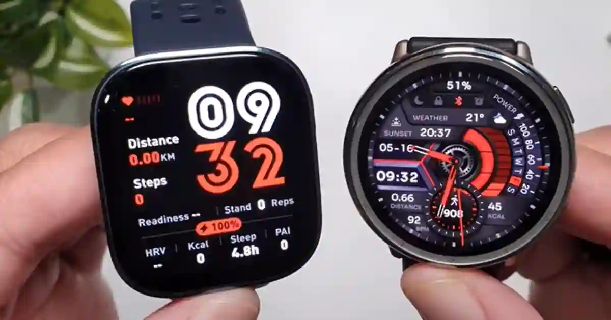 Both devices run Zepp OS 4.5, with a smooth UI, strong app support, and a deep watch face store.